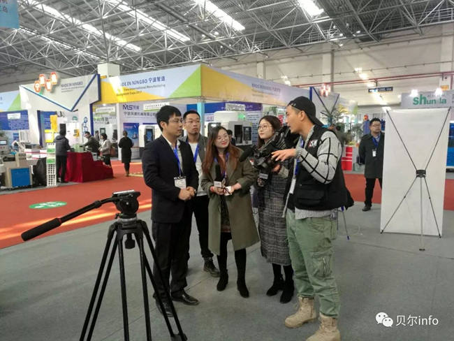 央視記者到貝爾機(jī)械展位采訪