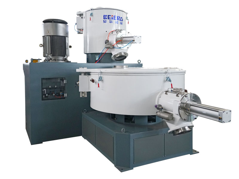 該機(jī)組將熱混和冷混工藝結(jié)合在一起,完成熱混的物料自動(dòng)進(jìn)入冷混使其冷卻,排除殘余氣體,并可防止結(jié)塊。