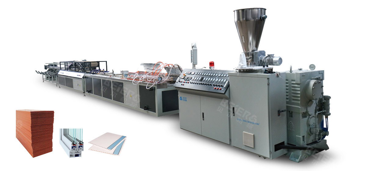 b.專為木塑產(chǎn)品設(shè)計(jì)的螺桿,使得塑化更好,產(chǎn)量更高,雙金屬材質(zhì)機(jī)筒螺桿,使得機(jī)筒螺桿更耐磨,使用壽命更長(zhǎng)。