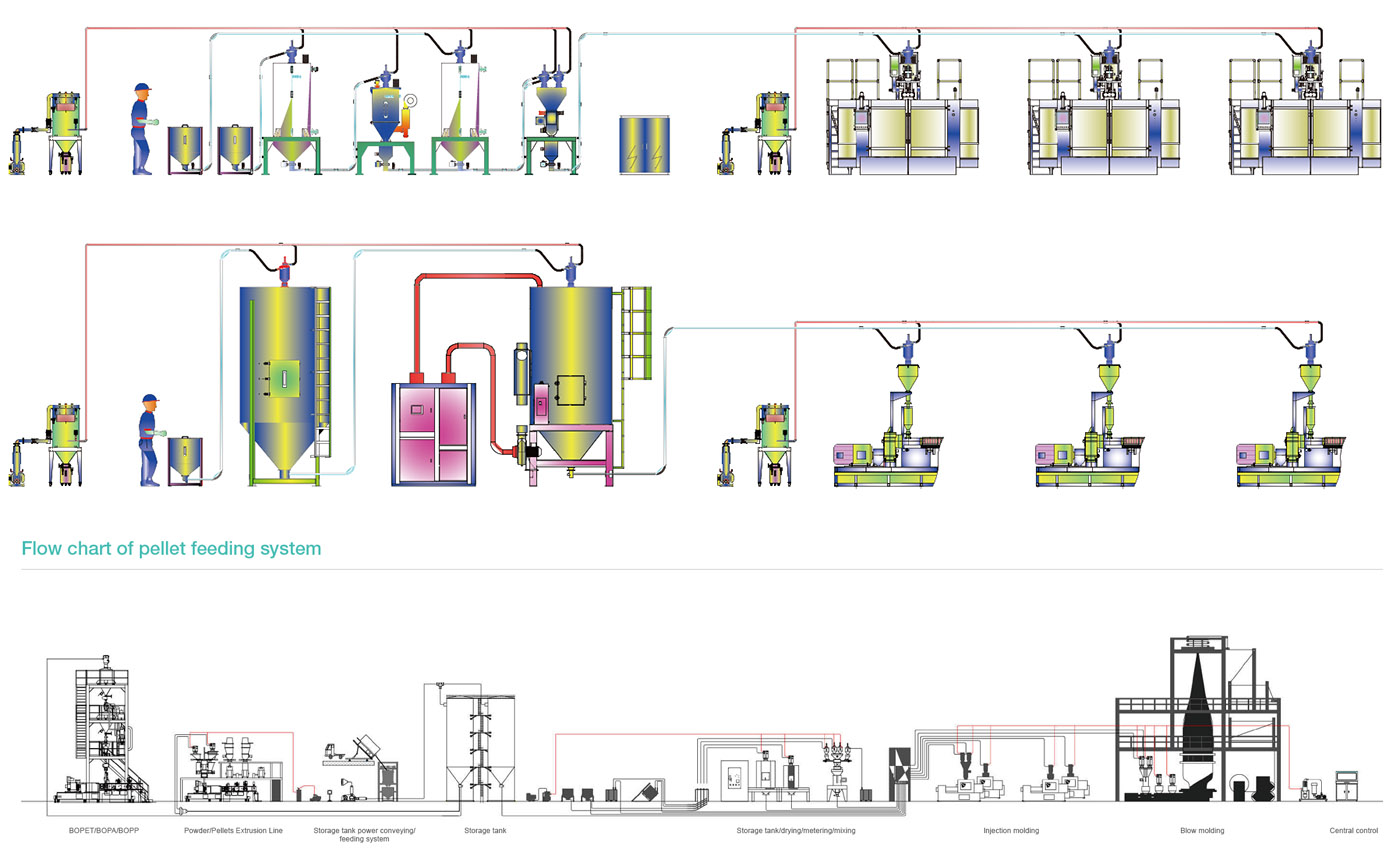 • 塑料顆粒集中供料系統(tǒng)集中控制可實(shí)現(xiàn)遠(yuǎn)距離控制操作,一臺(tái)真空泵可對(duì)多臺(tái)機(jī)供料。